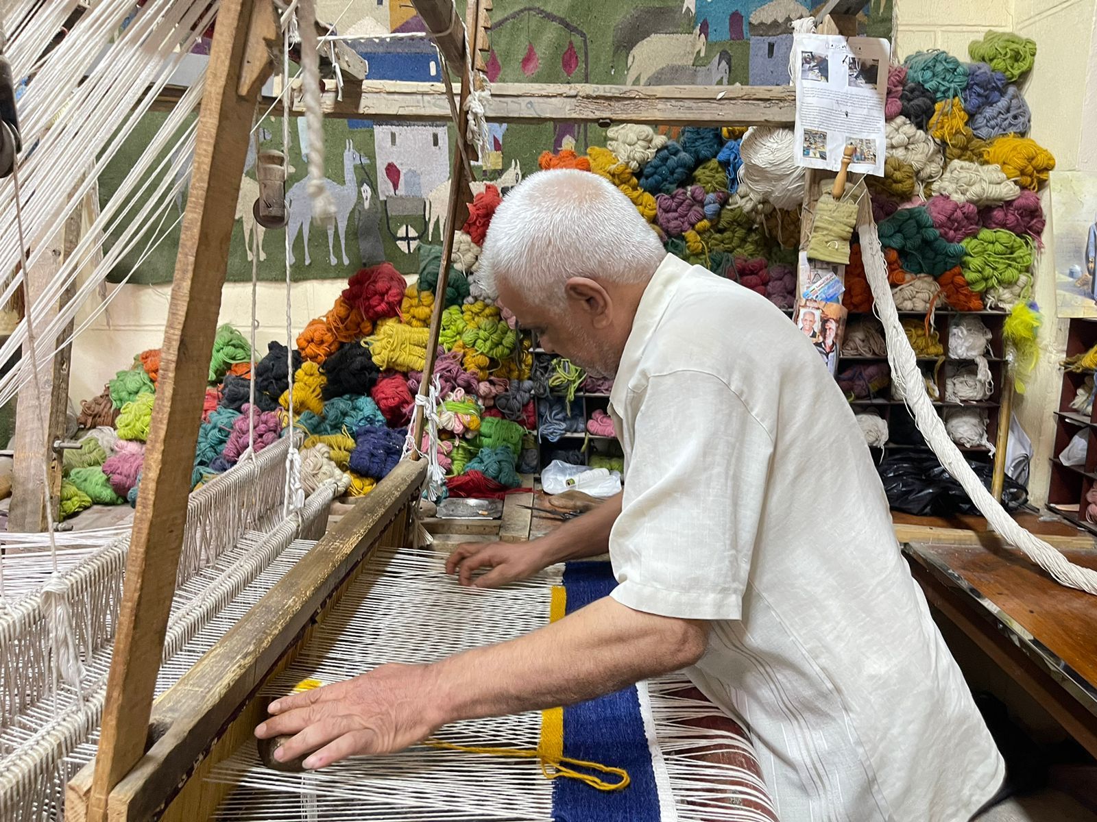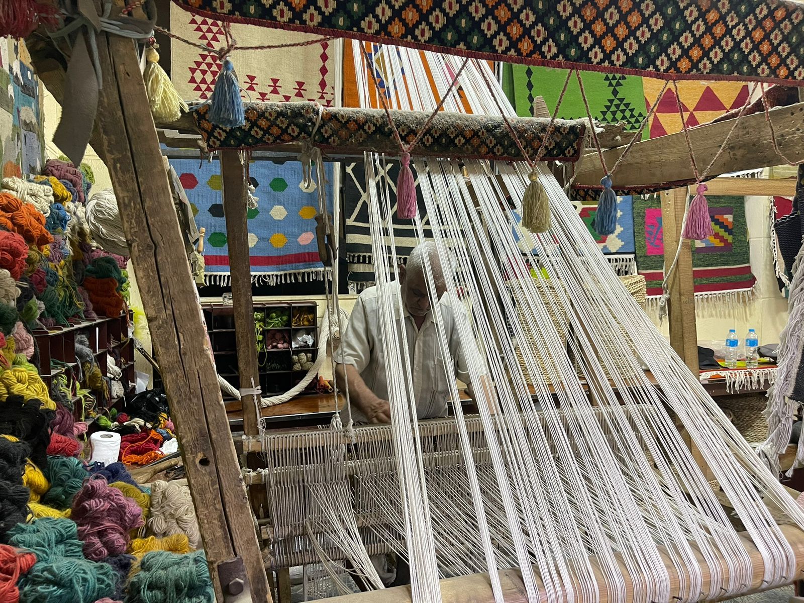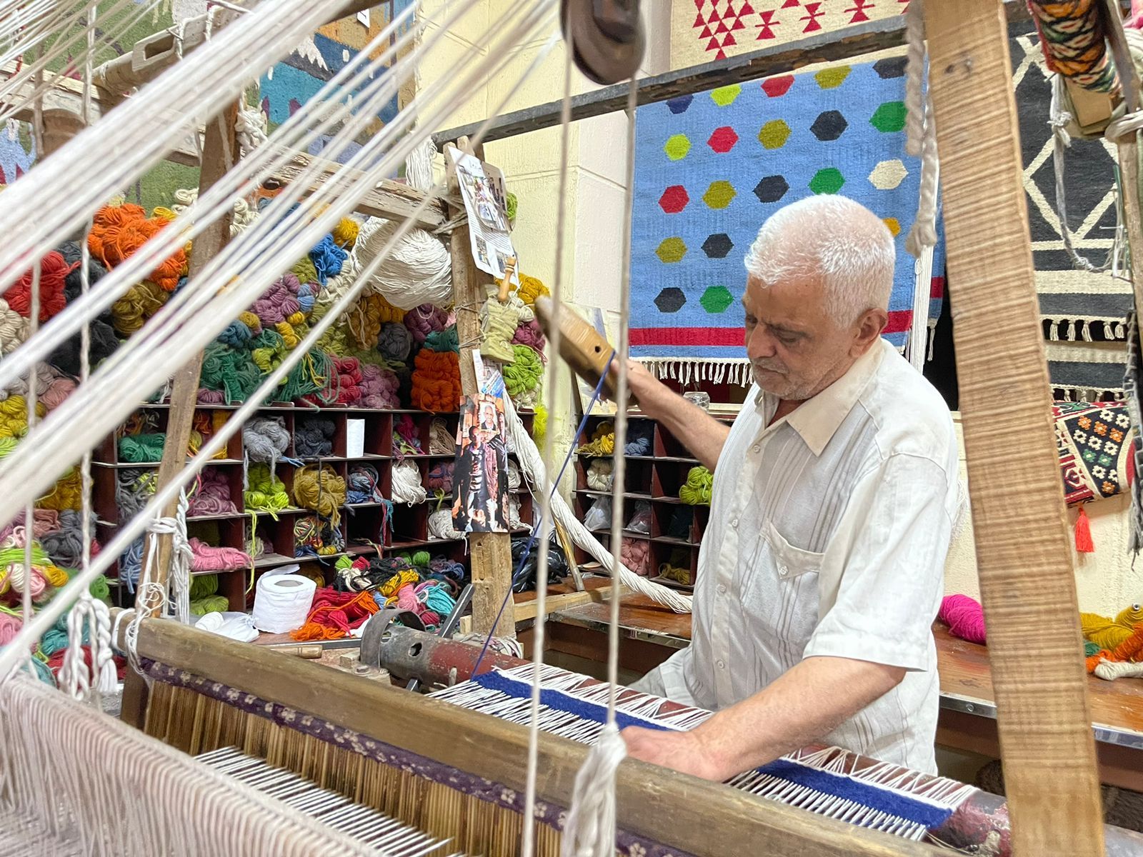 عم جابر يعلم سائحة صناعة السجاد اليدوي