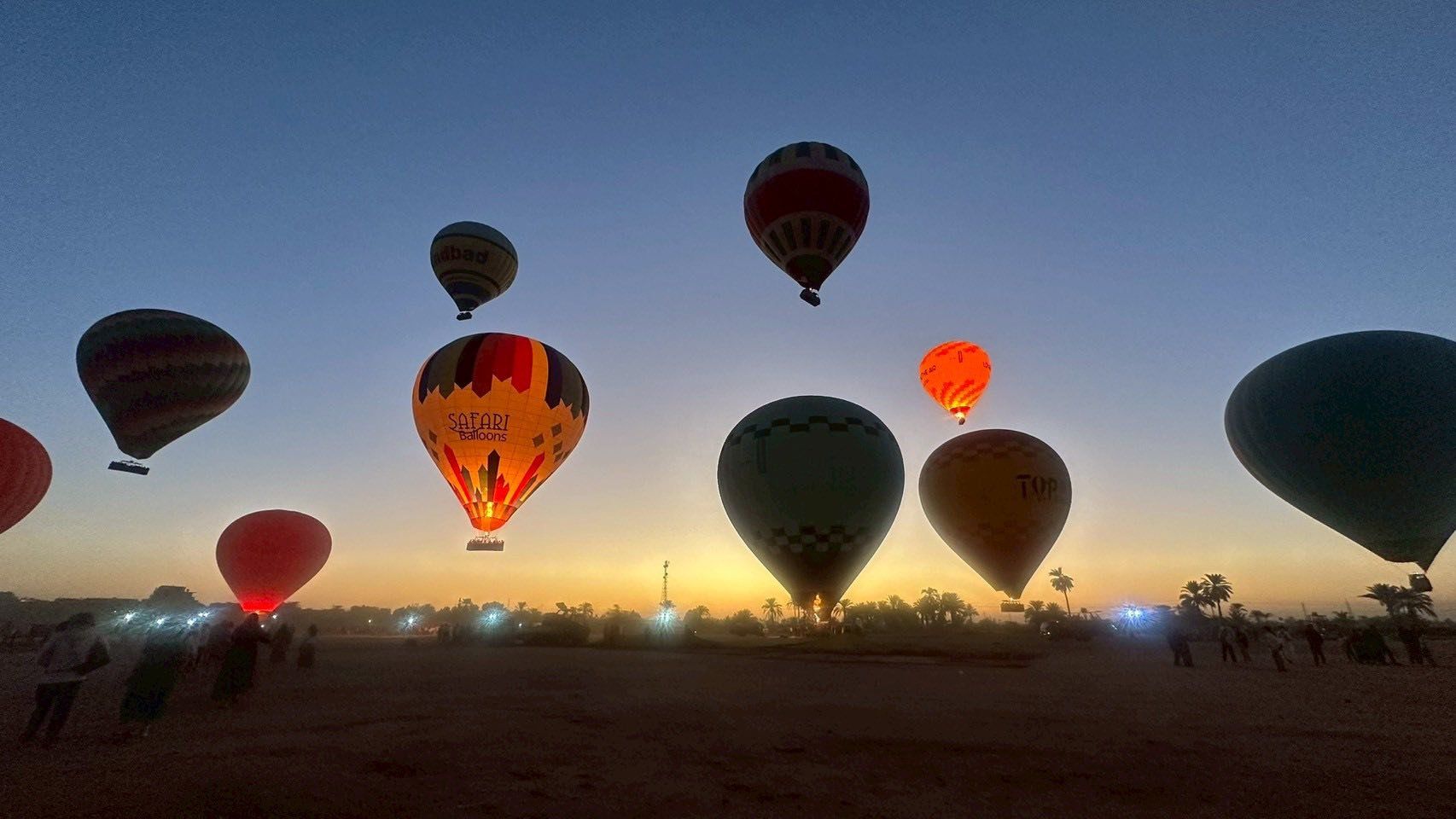 مشهد بديع لتحليق رحلات البالون الطائر فى الأقصر