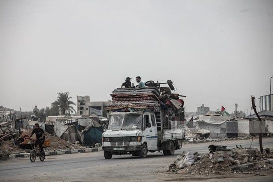 ورصدت وكالة الأنباء الفلسطينية وفا في تقرير ميداني من داخل مخيمي البريج والنصيرات أوضاعًا مأساوية يعيشها آلاف النازحين، مع بداية تساقط الأمطار وانخفاض درجات الحرارة. ويعاني السكان من غياب كامل لمقومات الحياة الأساسية — من الغذاء والدواء والمياه النظيفة — إلى غياب المأوى الآمن.