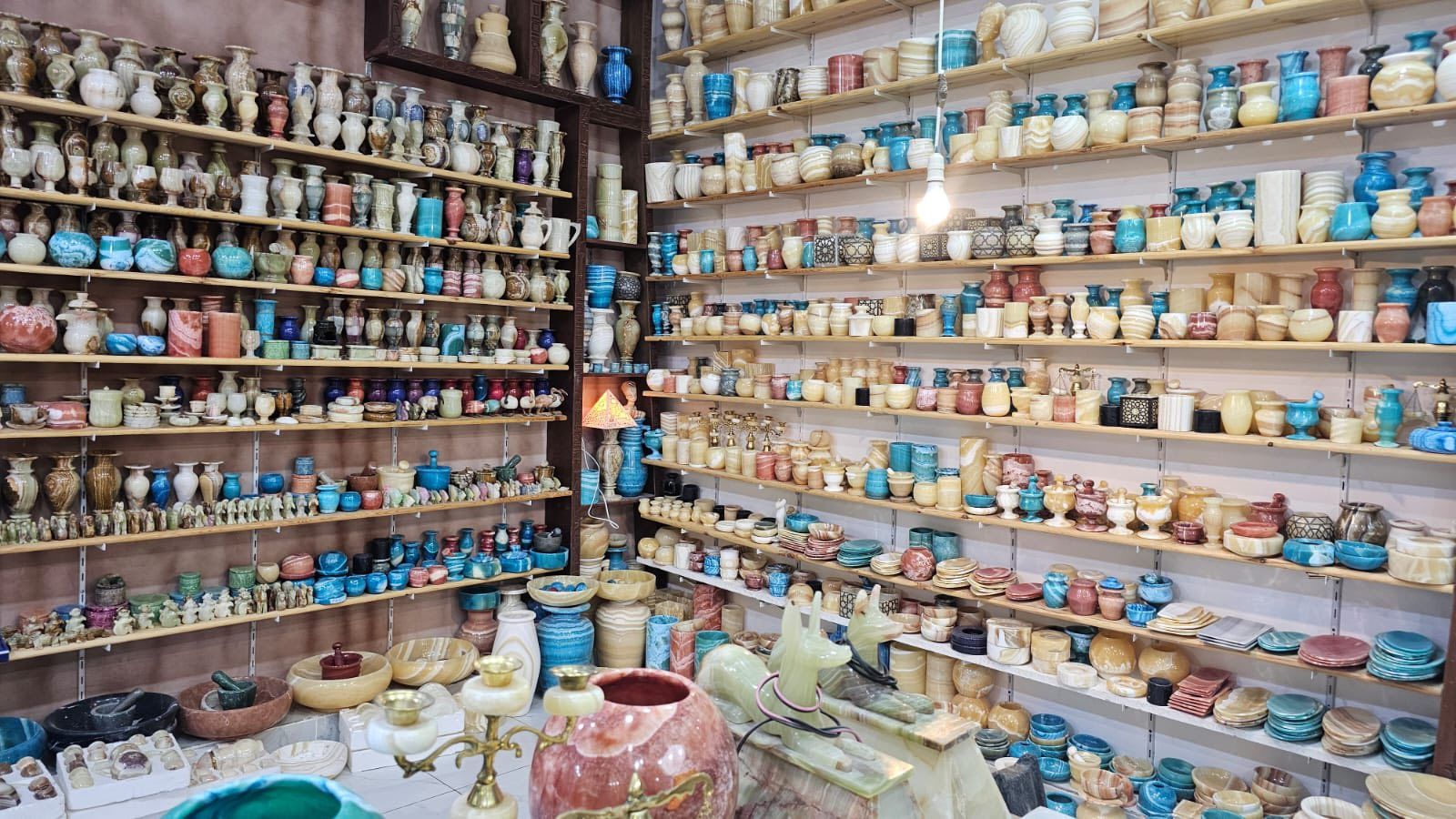 الألباستر على كل شكل ولون فى معارض وورش الأقصر