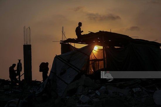 لحظة الغروق من على أنقاض منزل فى جباليا