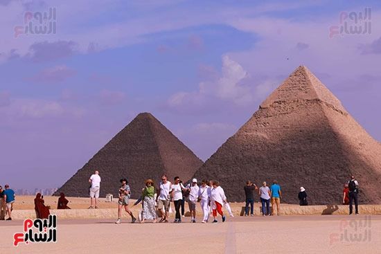 السائحون يستمتعون الأجواء في هضبة الأهرام