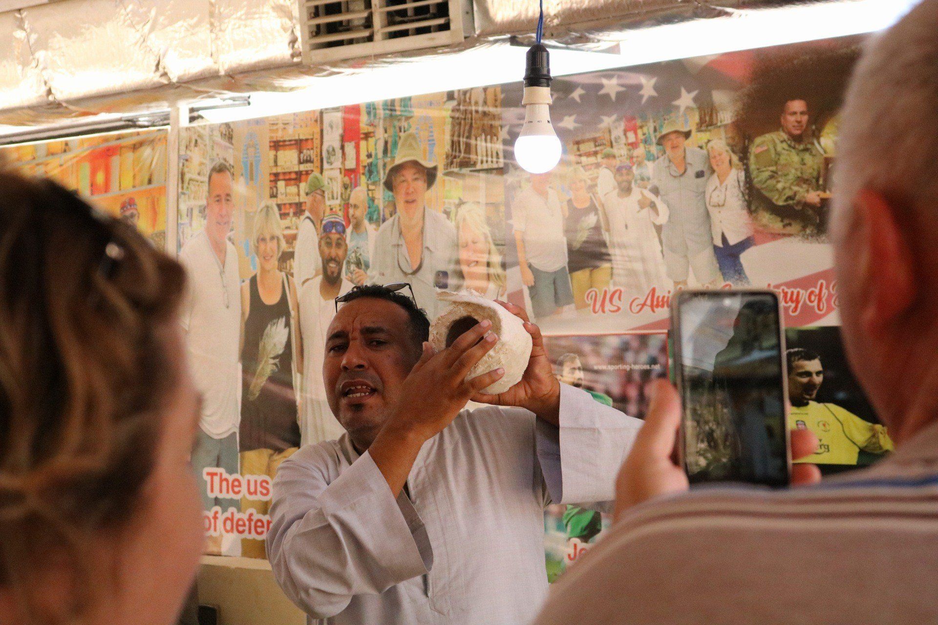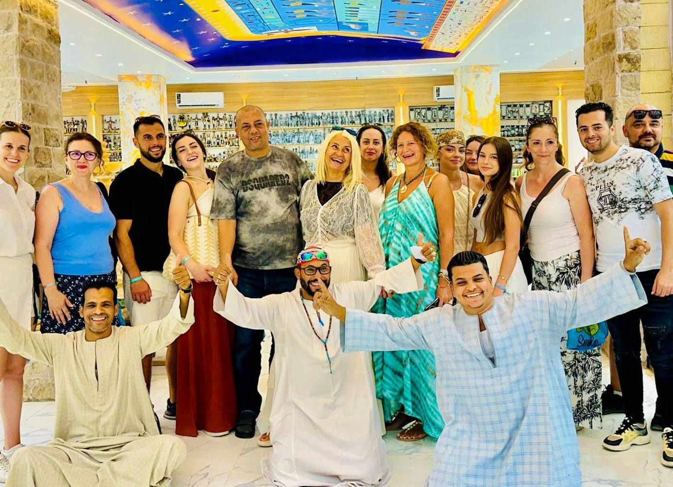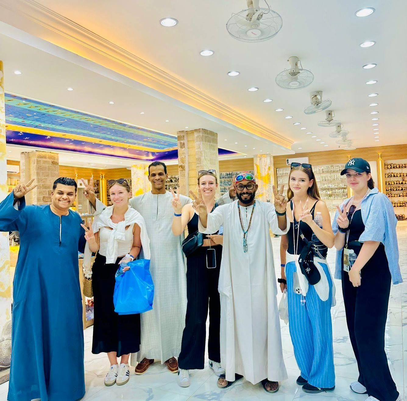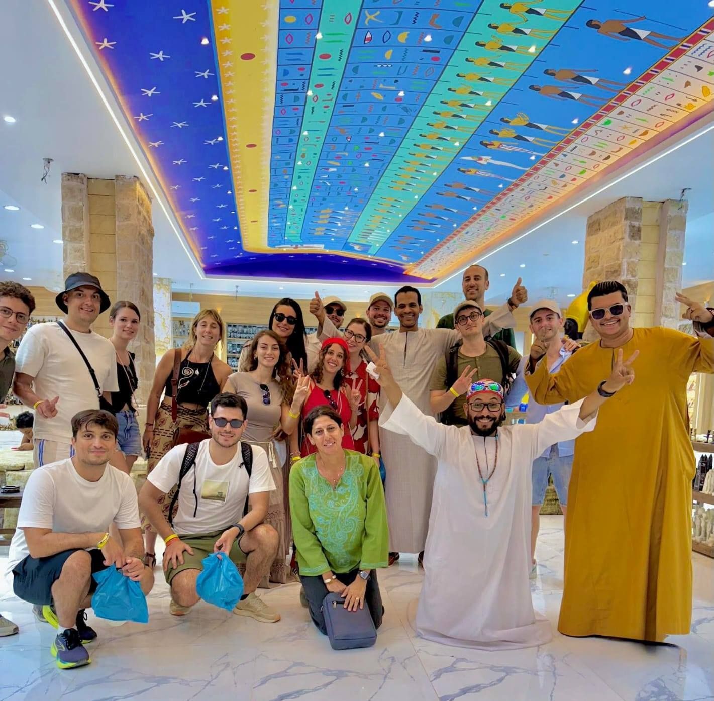 صور تذكارية لضيوف الأقصر فى معارض التحف الفرعونية