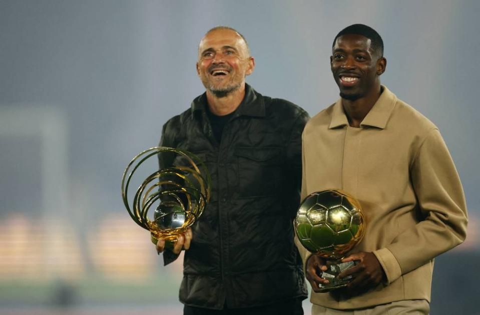 مدرب باريس سان جيرمان هو لويس إنريكي الفائز بجائزة أفضل مدرب في حفل الكرة الذهبية، وجاء خلفه هانزي فليك مدرب برشلونة، وعثمان ديمبيلي الفائز بجائزة أفضل لاعب في العالم وجاء خلفه لامين يامال.