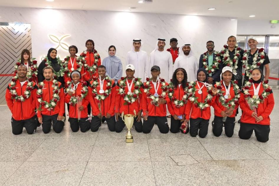 وكان في استقبال بعثة «أم الألعاب الإماراتية» لدى وصولها إلى مطار الشارقة الدولي، محمد عبد الناصر الخياط، نائب رئيس مجلس إدارة اتحاد ألعاب القوى، وفيصل الخميري الأمين العام للاتحاد، والوازنة فلاح عضو مجلس الإدارة رئيسة لجنة العلاقات العامة والاتصال المؤسسي، الذين طوقوا أعناق لاعبي ولاعبات المنتخب بالورود في مراسم استقبال تليق بالأبطال.