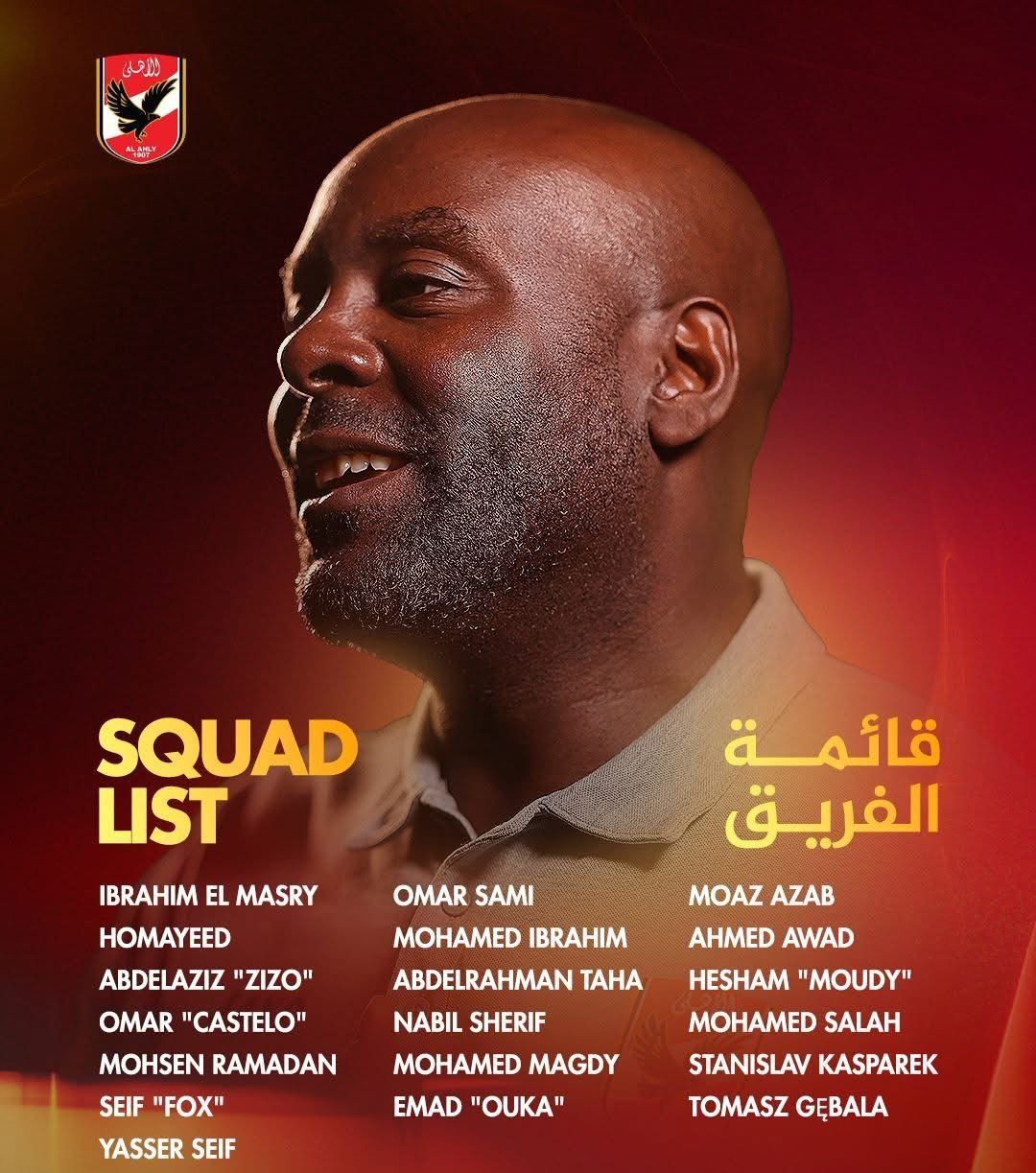 وتضم قائمة اللاعبين كلا من، إبراهيم المصري وعبد الرحمن حميد وعبد العزيز زيزو وعمر كاستيلو ومحسن رمضان وسيف هاني وياسر سيف وعمر سامي ومحمد إبراهيم وعبد الرحمن طه ونبيل شريف ومحمد مجدي وعماد أوكا ومعاذ عزب وأحمد عوض وهشام مودي ومحمد صلاح والمحترفين كسباريك وتوماس جيبالا.