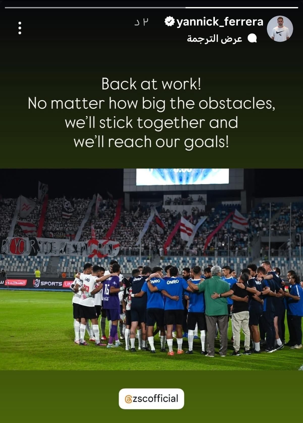 وكتب فيريرا على الصورة:"العودة إلى العمل،مهما كانت العقبات كبيرة،سنبقى معًا وسنصل إلى أهدافنا".