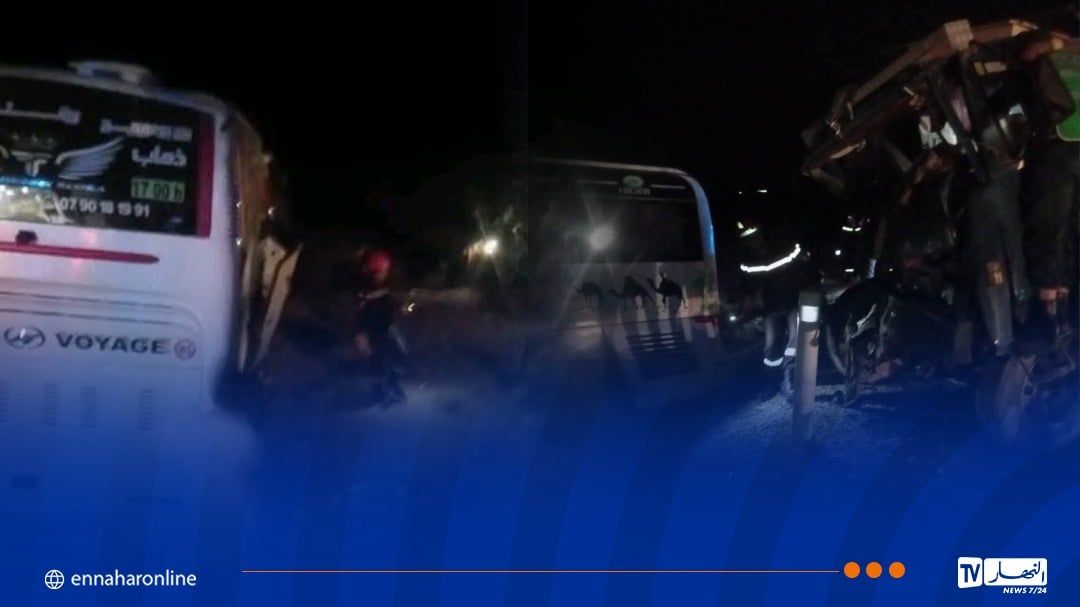 وحسب بيان لمصالح الحماية المدنية، فإن الحادث تمثل في اصطدام بين شاحنة وحافلة لنقل المسافرين تعمل على خط (برج بوعريريج - حاسي مسعود)، بالمكان المسمى مدخل ولتام.
