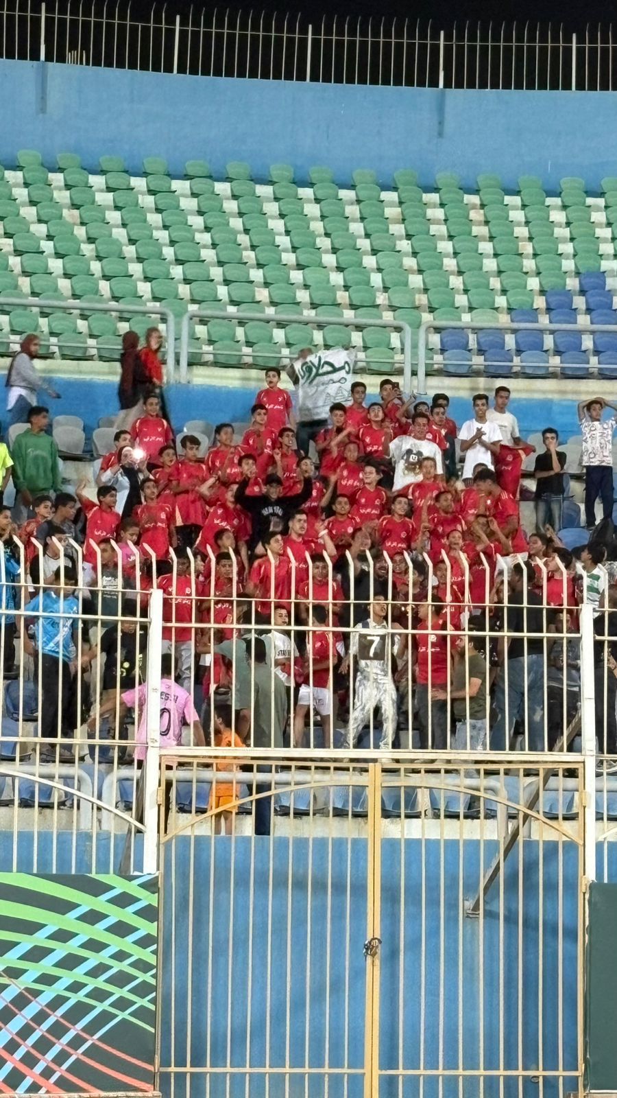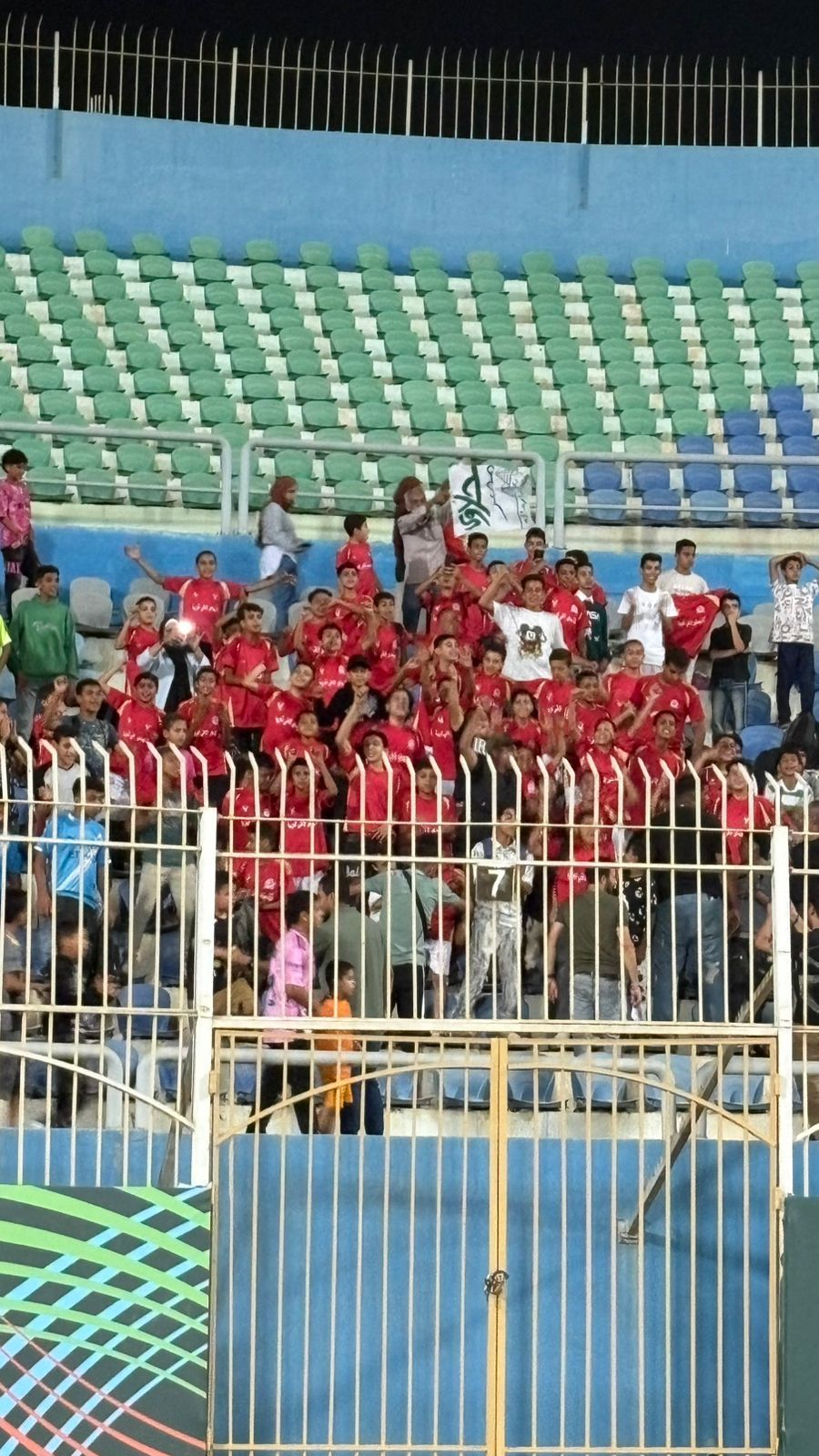 حرص مجموعة من جماهير نادي بيراميدز الناشئين على مؤازرة الفريق فى مدرجات استاد الدفاع الجوي، قبل انطلاق مواجهة نهضة بركان المغربي فى بطولة السوبر الأفريقي، مرتدية القميص الأحمر والشورت الأبيض، فى لفتة لاقت إعجاب الحاضرين، حيث ظلت الجماهير تهتف للفريق السماوي وتشعل الأجواء بالحماس قبل ضربة البداية.