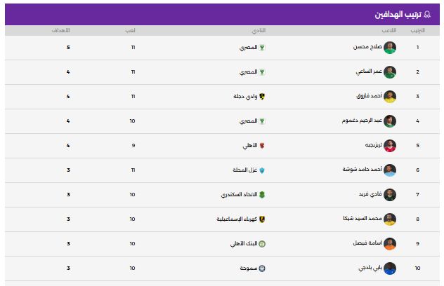 جدول ترتيب هدافى الدورى المصرى الممتازجدول ترتيب هدافى الدورى المصرى