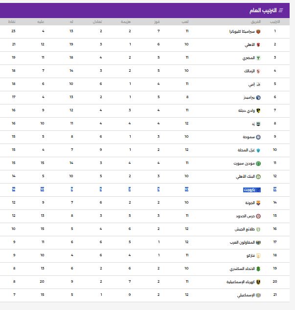 جدول ترتيب مسابقة الدورى المصرىجدول ترتيب الدورى