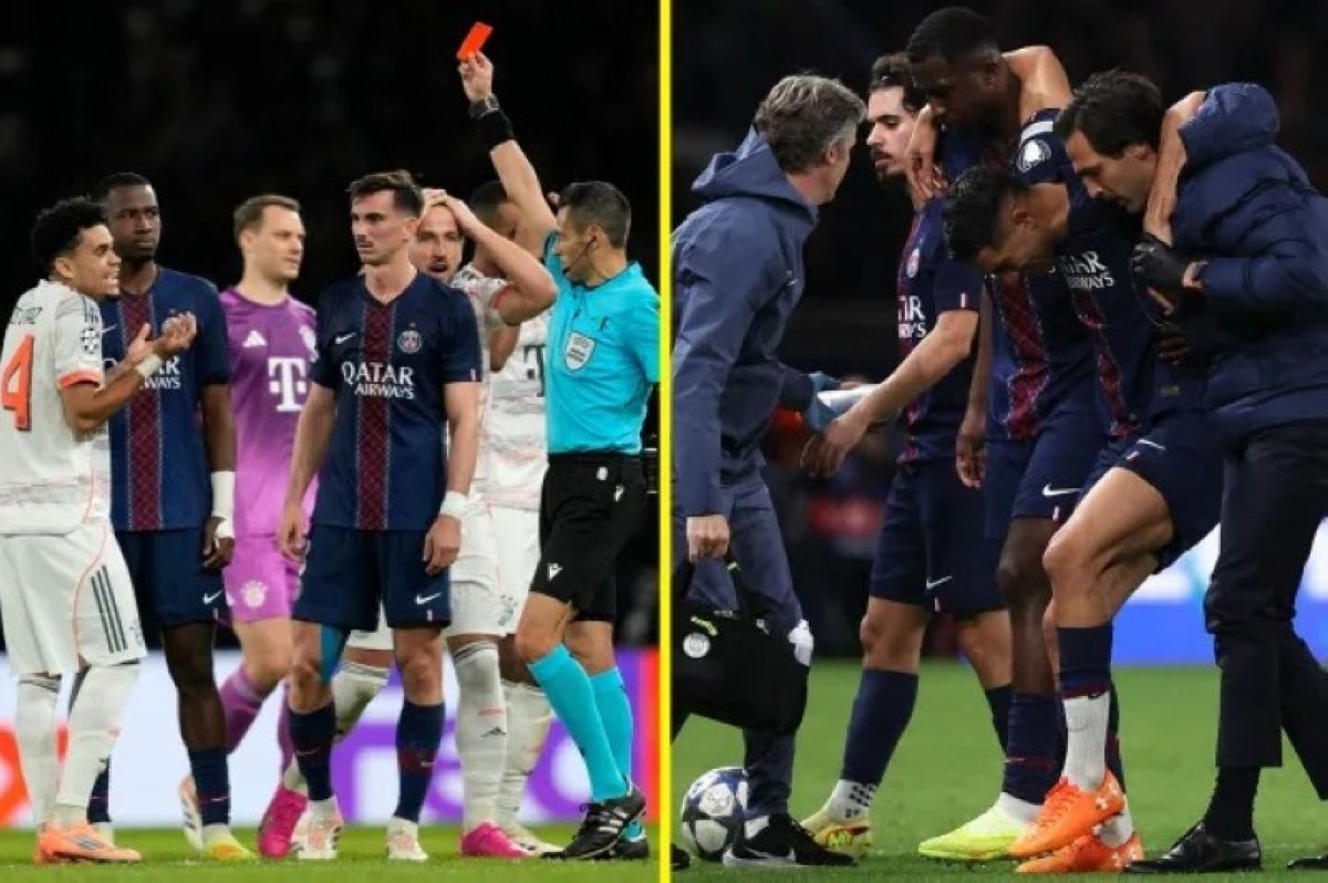 وقبل نهاية الشوط الأول، أشهر حكم المباراة البطاقة الحمراء في وجه لويس دياز بعد تدخل عنيف ضد النجم المغربي أشرف حكيمي في منتصف الملعب، وغادر الأخير الملعب باكياً من شدة الإصابة التي تهدد مشاركته مع منتخب بلاده في كأس الأمم الأفريقية 2025.