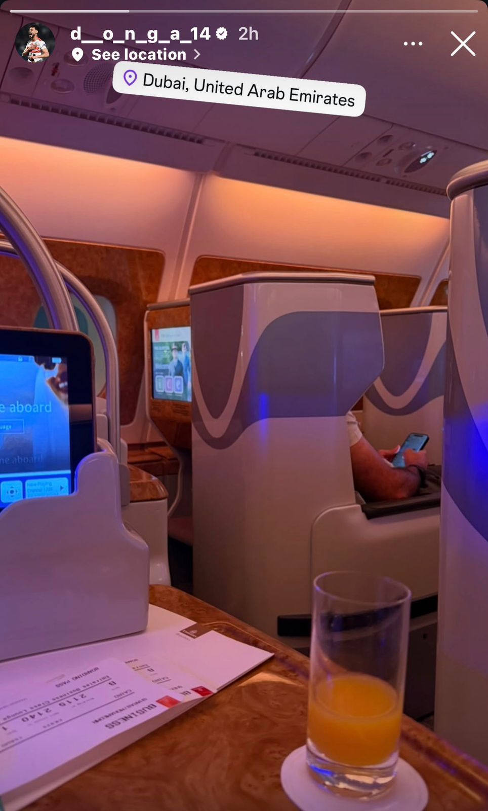 نشر نبيل عماد دونجا، لاعب وسط نادي الزمالك، صورة له عبر إنستجرام وهو فى الطائرة متوجها إلى الإمارات من أجل مساندة فريقه خلال مباراة السوبر المصري أمام بيراميدز، والمقرر إقامتها غدا الخميس والتى سيتأهل الفائز منها لمواجهة الفائز من مباراة الأهلى وسيراميكا فى النهائى.