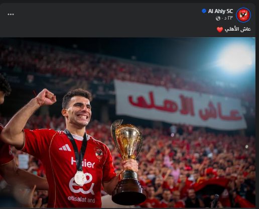 احتفل أحمد سيد "زيزو" صانع ألعاب فريق الأهلى بكأس السوبر المصرى مع الجماهير الحمراء، حيث نشرت الصفحة الرسمية للنادى بموقع التواصل الاجتماعى صورة له وخلفه لافته "عاش الأهلى".
