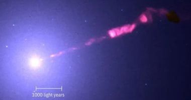 السبت، 04 أكتوبر 2025 04:00 صالتقط تلسكوب جيمس ويب الفضائي (JWST) أوضح صورة بالأشعة تحت الحمراء على الإطلاق لنفاثة الثقب الأسود من قلب المجرة العملاقة M87، كاشفًا عن تفاصيل جديدة حول التدفق الناتج عن الثقب الأسود، وفي الصورة الجديدة التي التقطها تلسكوب جيمس ويب الفضائي، يظهر التدفق كشريط وردي مضيء ينكشف على خلفية بنفسجية ضبابية، وينطلق تيار الجسيمات المشحونة على بُعد بضعة آلاف من السنين الضوئية من الثقب الأسود المركزي لمجرة M87.