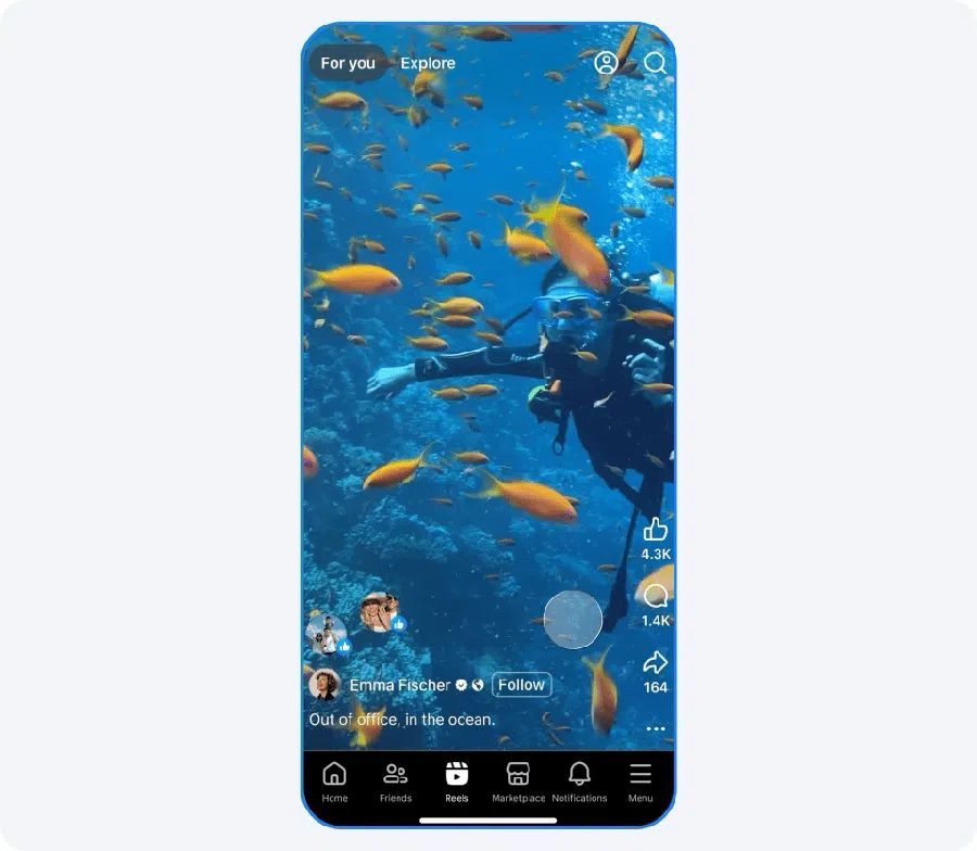 إلى جانب ذلك، ستظهر فقاعات الأصدقاء في كل من واجهة Reels والخلاصات الرئيسية، بحيث يتمكن المستخدم من رؤية المقاطع والمنشورات التي تفاعل معها أصدقاؤه، ويمكن النقر على صورة صديق داخل الفقاعة لفتح محادثة خاصة مباشرة معه — وهي ميزة مستوحاة من واجهة "انستجرام".