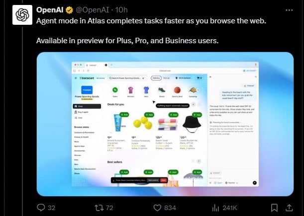 وأكدت OpenAI أنها تعمل بالفعل على توسيع نطاق Atlas ليشمل أجهزة Windows وiOS وAndroid فى الأشهر المقبلة، بهدف جعل تجربة التصفح المدعومة بالذكاء الاصطناعى متاحة عبر جميع المنصات الرئيسية.