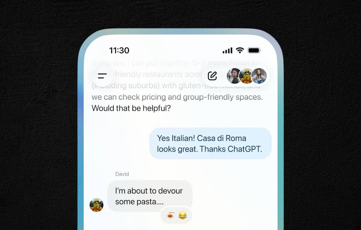 وتُتيح هذه الميزة للمستخدمين التعاون في محادثات مشتركة إلى جانب استخدام ChatGPT، حتى يُمكن الاستفادة من دعم الذكاء الاصطناعي في أي وقت خلال النقاش.
