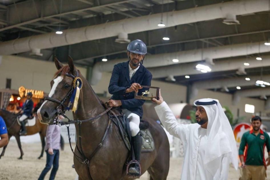 خطف الفارس راشد محمد الرميثي، جائزة منافسة قفز الحواجز بمواصفات الجولة الواحدة على حواجز الـ130 سم، والتي أقيمت في ثاني أيام منافسات قفز الحواجز في الأسبوع السابع على ميدان الصالة المغطاة بأكاديمية بوذيب.شهد المنافسات وتوّج الفائزين محمد حاتم الجنيبي، مدير الفعاليات والأنشطة.