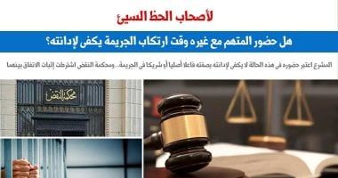لأصحاب الحظ السيئ.. هل حضور المتهم مع غيره وقت ارتكاب الجريمة يكفى لإدانته؟.. المشرع اعتبر حضوره فى هذه الحالة لا يكفى لإدانته بصفته فاعلا أصليا أو شريكا فى الجريمة.. ومحكمة النقض اشترطت إثبات الاتفاق بينهما