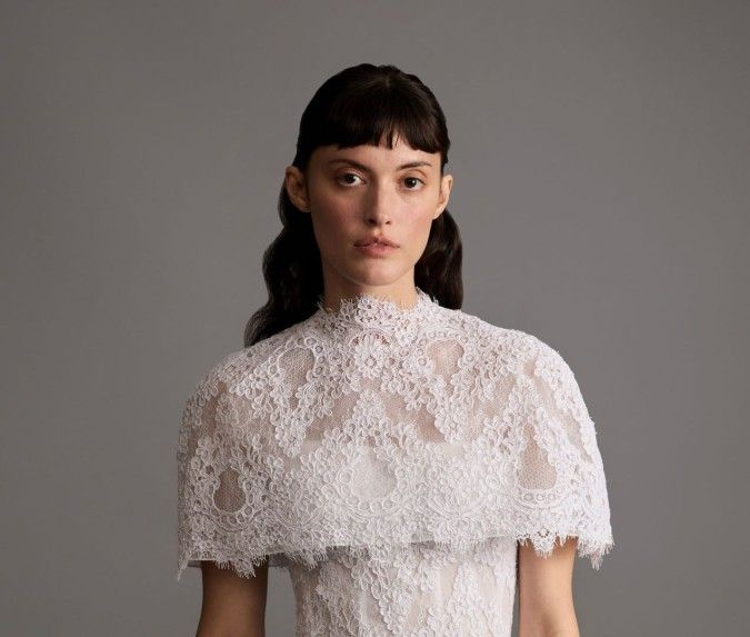 في عرض دار هاوس جيل House Gilles، خلال أسبوع الموضة للعرائس في نيويورك لخريف وشتاء 2026، تألقت العروس بتسريحة شعر تجمع بين البساطة المينيمالية والجرأة الفنية الهادئة، حيث اختارت تسريحة شعر مفرودة مالسة تترافق مع غرّة ستارة قصيرة، وسحب الشعر إلى الخلف بخفّة، مع ترك الخصلات تنساب بانسيابية ناعمة على الظهر، ما عكس طابعاً رقيقاً وأنيقاً يشبه نقاء الدانتيل الذي يزيّن الفستان. أما الغرة الستارة القصيرة فقد أضفت لمسة حداثية على الإطلالة؛ إذ جاءت مقصوصة بدقة لتلامس الحاجبيْن. هذه التسريحة مميزة لعروس تبحث عن مظهر مينيمالي ناعم، مع لمسة من الجرأة الراقية التي تمنح الإطلالة شخصية خاصة، ومثالية تتناغم مع فساتين الدانتيل عالية الرقبة.