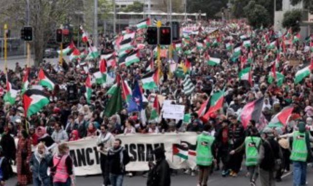 تظاهر الآلاف في العاصمة الفرنسية دعما للفلسطينيين في قطاع غزة بمناسبة اليوم العالمي للتضامن مع الشعب الفلسطيني.