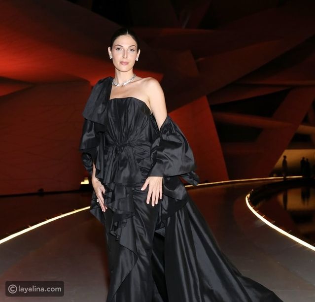 جاءت إطلالة الفنانة اللبنانية رزان جمال باللون الأسود أيضاً من خلال فستان طويل ومنفوش بقصة واسعة من الأسفل، واعتمدت تسريحة الشعر المرفوعة مع المكياج الهادئ، وزيّنت إطلالتها بعقد وأقراط من دار كارتييه منحتها لمسة كلاسيكية.