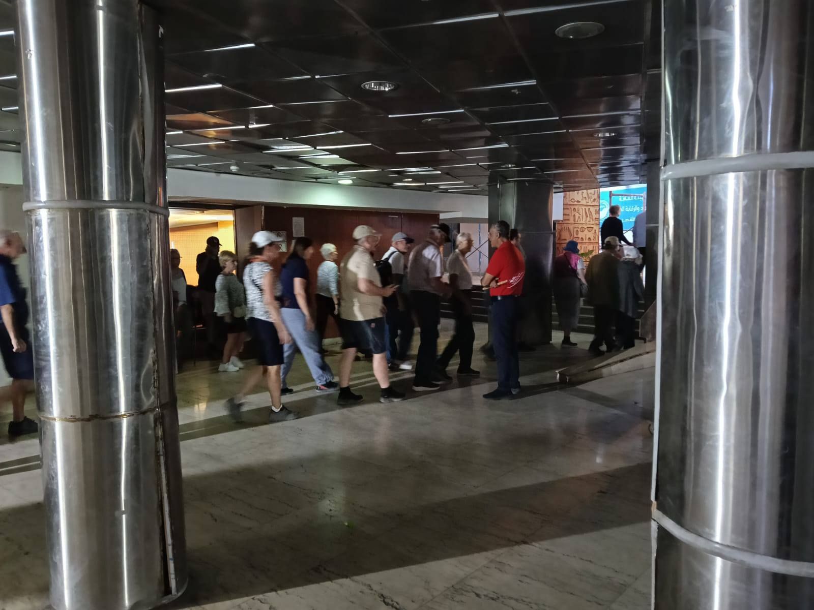 السياح خلال الاستمتاع داخل مكتبة مصر العامة بمشاهد طريق الكباش