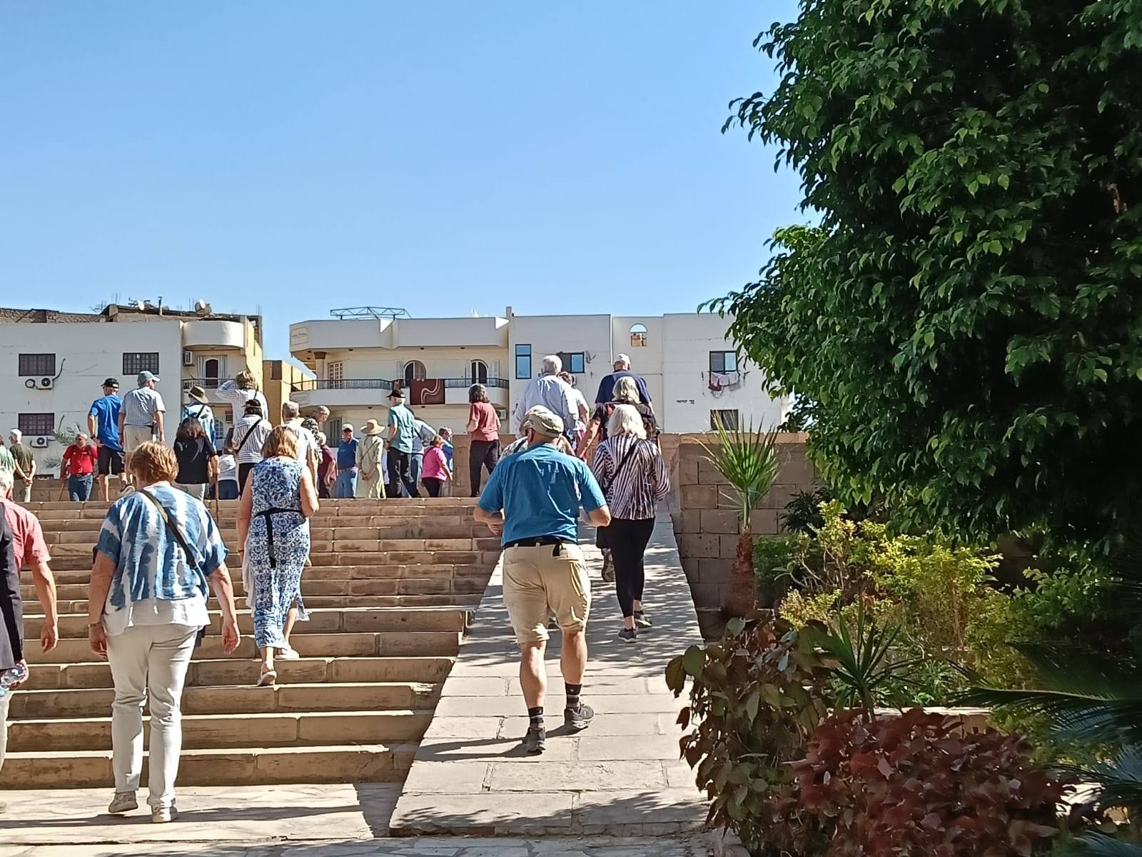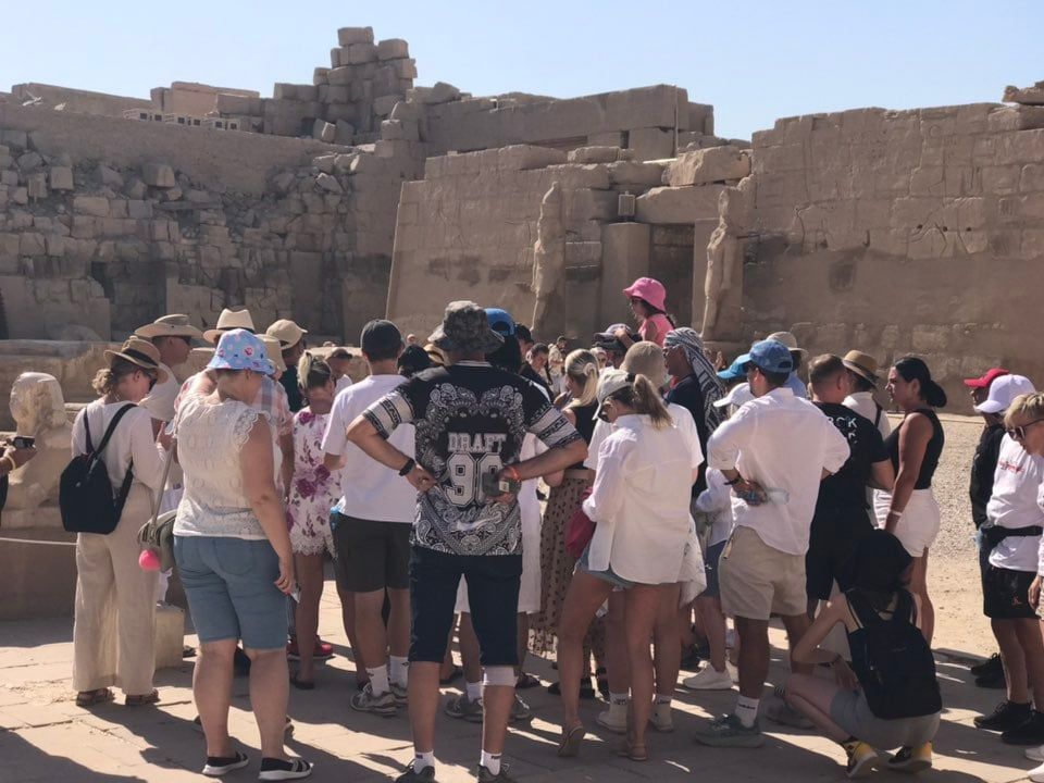 الأفواج السياحية خلال الاستماع إلى شرح فى المعابد