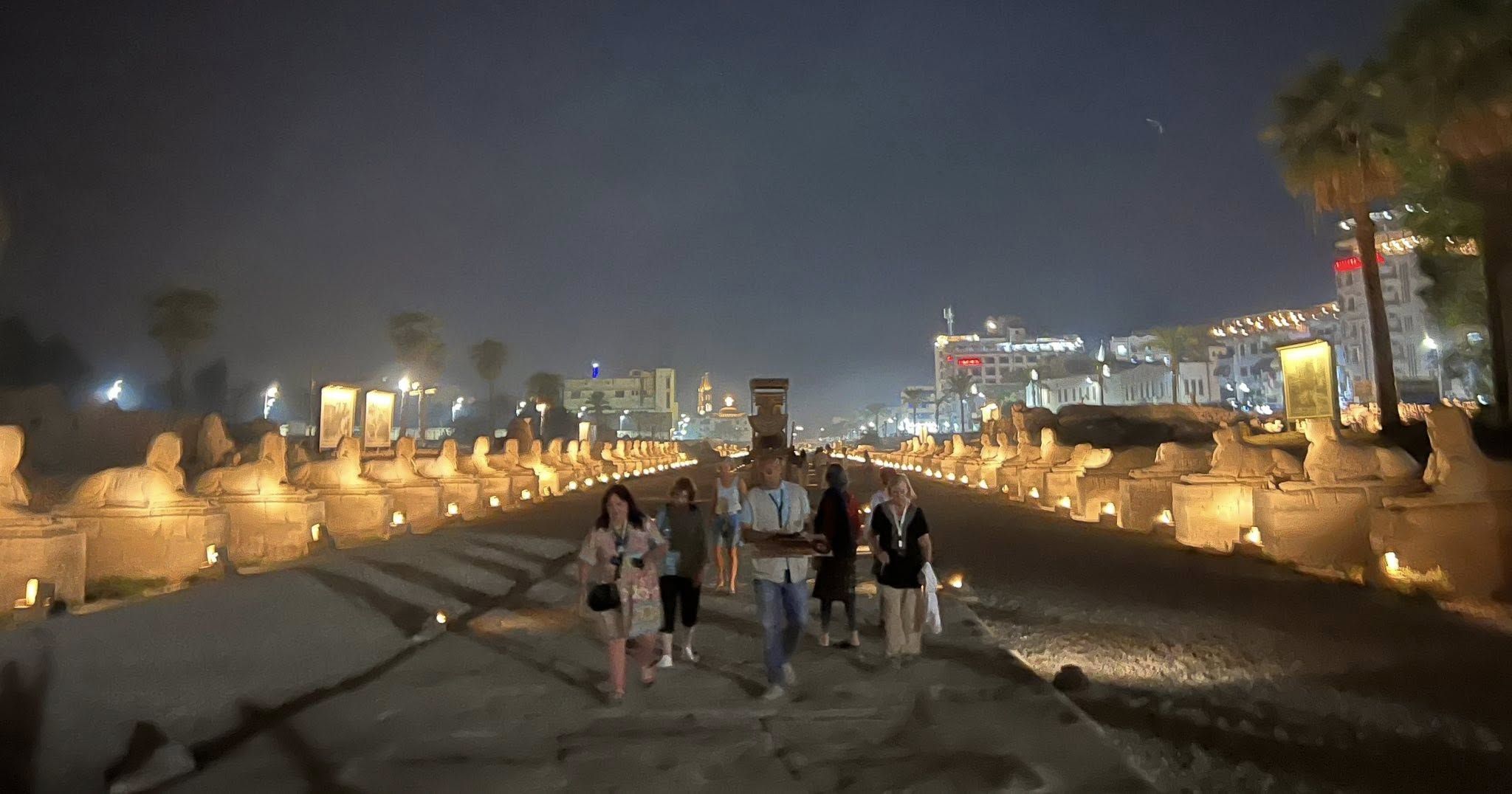 زيارات السياح فى قلب طريق الكباش الفرعونى ليلاً
