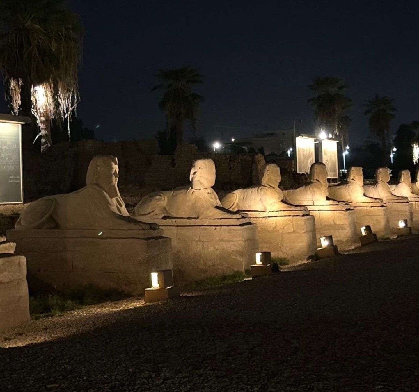 سحر الإضاءة الليلية فى طريق الكباش الفرعونى