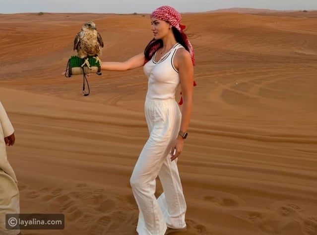 لم تكن إطلالة فهرية أفجان أقل تأثيراً من مغامراتها في الصحراء. فقد اختارت زياً كاملاً باللون الأبيض الناصع، حيث ارتدت تيشيرت وبنطال فضفاض، مع لف رأسها بالشماغ التقليدي الأحمر والأبيض، ما أضاف بعداً ثقافياً عملياً في الوقت نفسه.