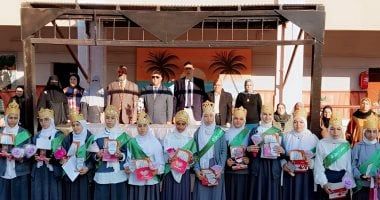 وكيل تعليم الفيوم يحضر طابور الصباح ويكرم 16 طالبة من حفظة القرآن الكريم