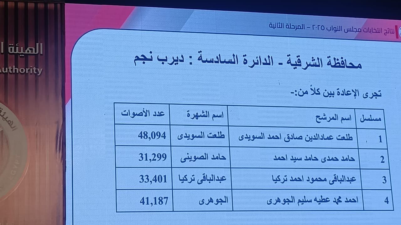 نتائج الدوائر الانتخابية في محافظة الشرقية (4)