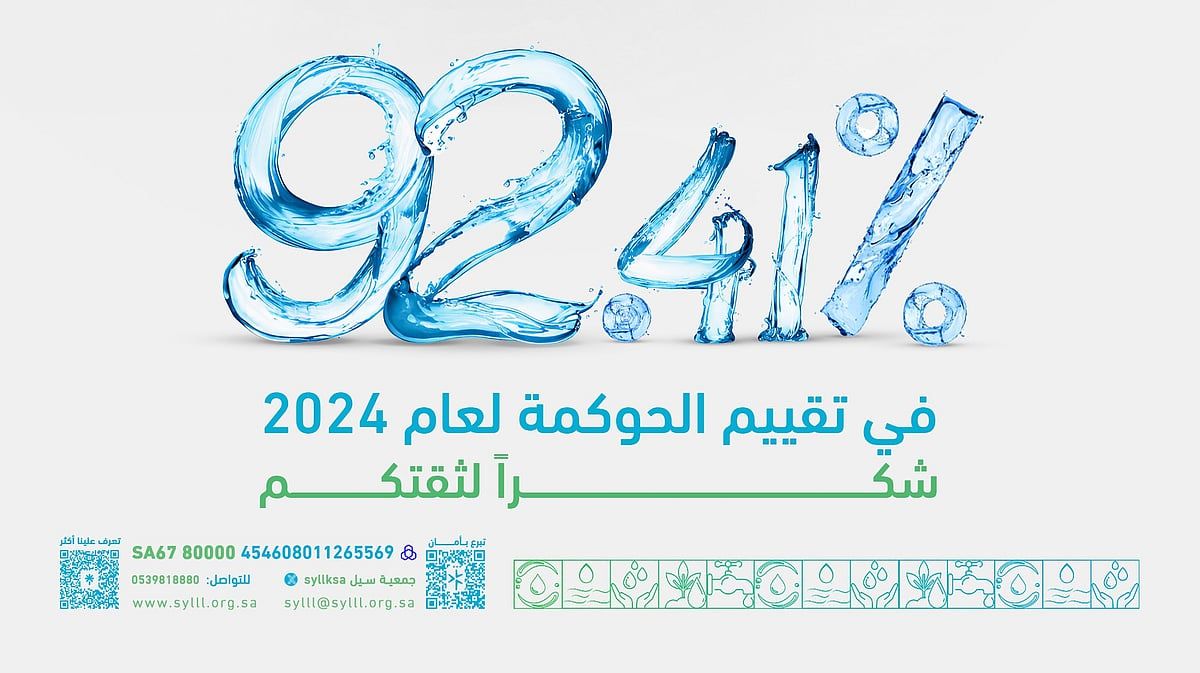أعلنت جمعية سيل “ماء ونماء” عن حصولها على درجة (92.41%) في تقييم الحوكمة لعام 2024، الصادر عن المركز الوطني لتنمية القطاع غير الربحي، وذلك ضمن معايير الالتزام المهني والرقابي التي ترفع جودة الأداء وتعزز الشفافية والاستدامة المؤسسية.