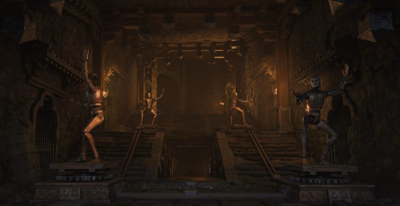 في الغرفة الأولى ستجد أمامك تمثالين نحاسيين وترسًا معدنيًا. الوقوف على الترس سيؤدي إلى دوران التمثال الموجود على اليسار ببطء.