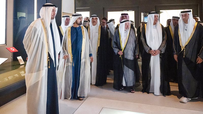 وقام صاحب السمو رئيس الدولة وأصحاب السمو الحكام والشيوخ بجولة في المتحف، اطلعوا خلالها على معروضات ووثائق وقطع أثرية ومقتنيات تتناول محطات بارزة من تاريخ دولة الإمارات وماضيها الضارب في جذور التاريخ وإرث المؤسس الشيخ زايد، وتضم مجموعة من التسجيلات الصوتية والصور الفوتوغرافية ومقاطع فيديو أرشيفية ومقتنيات شخصية.