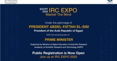 يُقام المعرض الدولي لتسويق مخرجات البحوث IRC Expo 2025 بالعاصمة الجديدة، تحت رعاية رئيس الجمهورية، وبحضور رئيس الوزراء وزير التعليم العالي والبحث العلمي، وتنظيم أكاديمية البحث العلمي والتكنولوجيا.