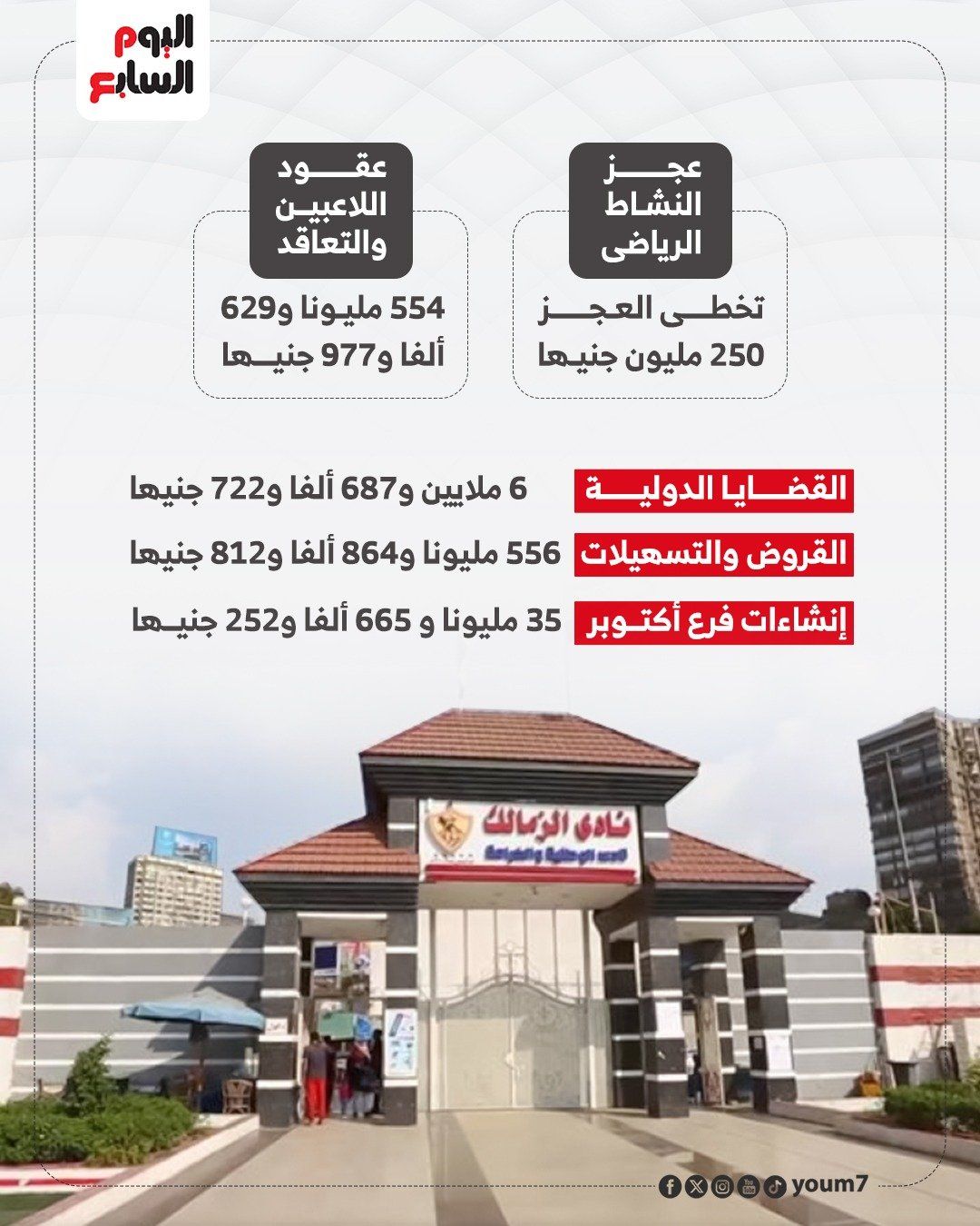 عجز النشاط الرياضىتخطى العجز في النشاط بخلاف كرة القدم بنادى الزمالك 250 مليون جنيها