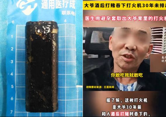 وعندما سُئل دينغ عما إذا كان لديه أي فكرة عن ماهية الجسم الصغير المستطيل في معدته، تذكر حادثة وقعت قبل حوالي 40 سنة، عندما ابتلع ولاعة بلاستيكية كتحدٍّ أثناء سهرة طيش مع بعض الأصدقاء. ولم يُخبر عائلته قط بالأمر، وكان يتخيل دائمًا أن الولاعة قد خرجت من جسده منذ زمن طويل. وبالنظر إلى الماضي، يتذكر شعوره بألم في المعدة دون سبب واضح، لكنه لم يتخيل أبدًا أن يكون سببه الولاعة التي ابتلعها قبل كل تلك السنوات. وبعد التأكد من أن الجسم الغريب هو ولاعة سجائر، قيّم الفريق الطبي أفضل طريقة لإزالته. واعتُبرت الجراحة شديدة التوغل، كما أن التنظير الداخلي المنتظم كان لديه أيضًا فرصة ولكنها ضئيلة للنجاح نظرًا لنعومة ملمس الولاعة. وفي النهاية، اختار الفريق تقنية تُشبه البالون، حيث غلف الجسم الغريب تمامًا قبل سحبه.