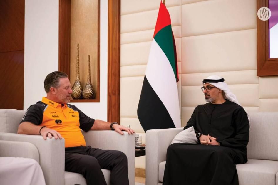 التقى سموّ الشيخ خالد بن محمد بن زايد آل نهيان، ولي عهد أبوظبي، رئيس المجلس التنفيذي لإمارة أبوظبي، زاك براون، الرئيس التنفيذي لشركة «ماكلارين» للسباقات، قبيل انطلاق سباق جائزة الاتحاد للطيران الكبرى للفورمولا 1 في أبوظبي.