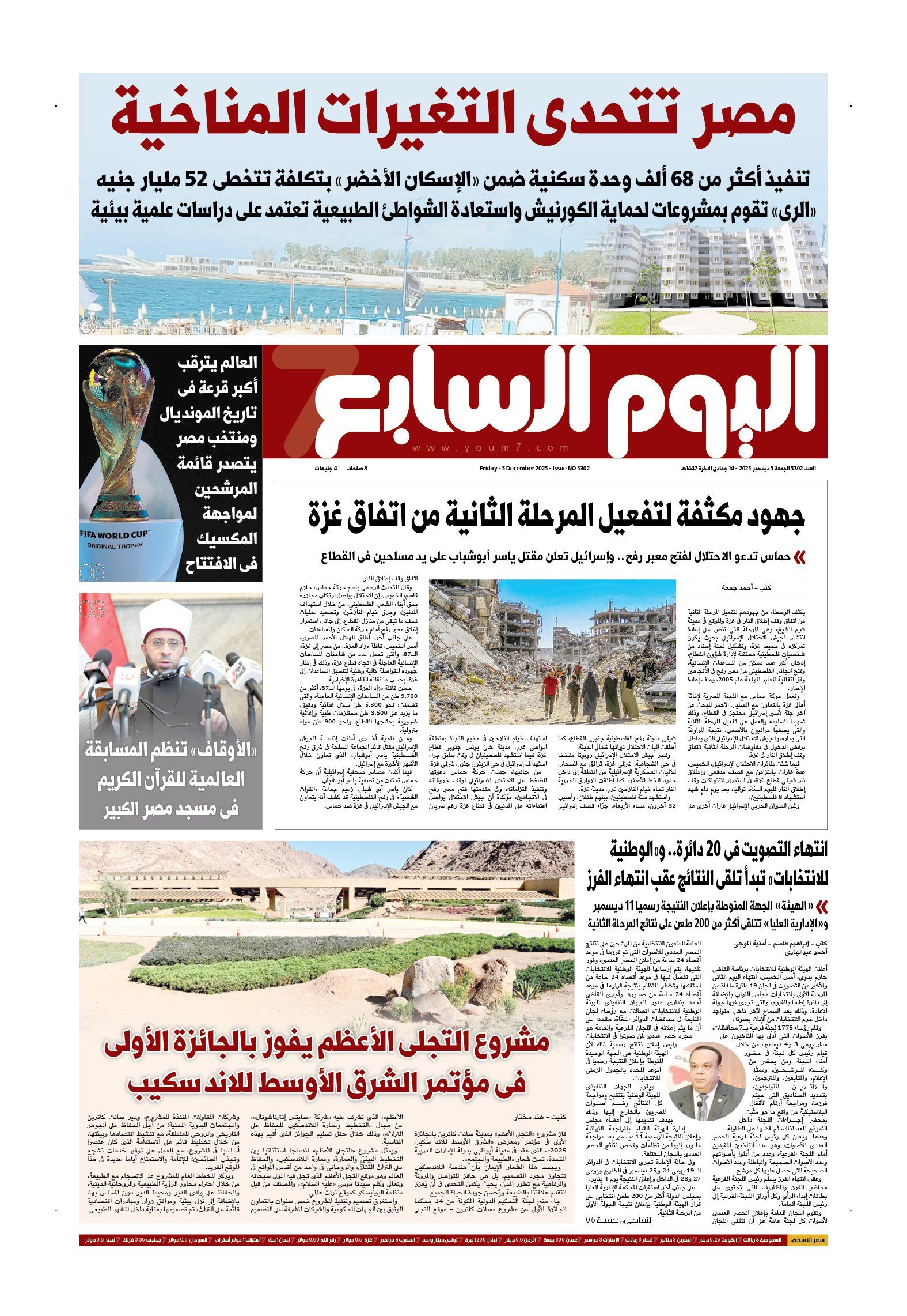 مصر تتحدى التغيرات المناخية.. تنفيذ أكثر من 68 ألف وحدة سكنية ضمن «الإسكان الأخضر» بتكلفة تتخطى 52 مليار جنيه.. «الرى» تقوم بمشروعات لحماية الكورنيش واستعادة الشواطئ الطبيعية تعتمد على دراسات علمية بيئيةجهود مكثفة لتفعيل المرحلة الثانية من اتفاق غزة.. حماس تدعو الاحتلال لفتح معبر رفح.. وإسرائيل تعلن مقتل ياسر أبوشباب على يد مسلحين فى القطاع