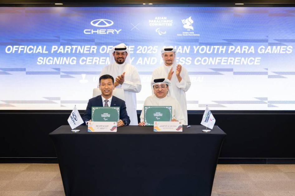 وقع ماجد العصيمي، رئيس اللجنة البارالمبية الآسيوية، وتشو شاو دونج، نائب الرئيس التنفيذي لشركة شيري الدولية للسيارات، اتفاقية شراكة لدعم الألعاب البارالمبية الآسيوية للشباب «دبي 2025» والحركة البارالمبية في القارة الآسيوية، من خلال الحلول الذكية لتحسين حياة أصحاب الهمم.