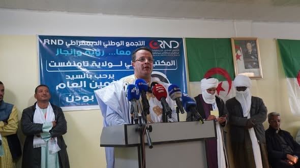 نشط منذر بودن الأمين العام لحزب التجمع الوطني الديموقراطي الأرندي مساء اليوم لقاءًا جواريا بمدينة سيلت، دائرة أبلسة، ولاية تمنراست.