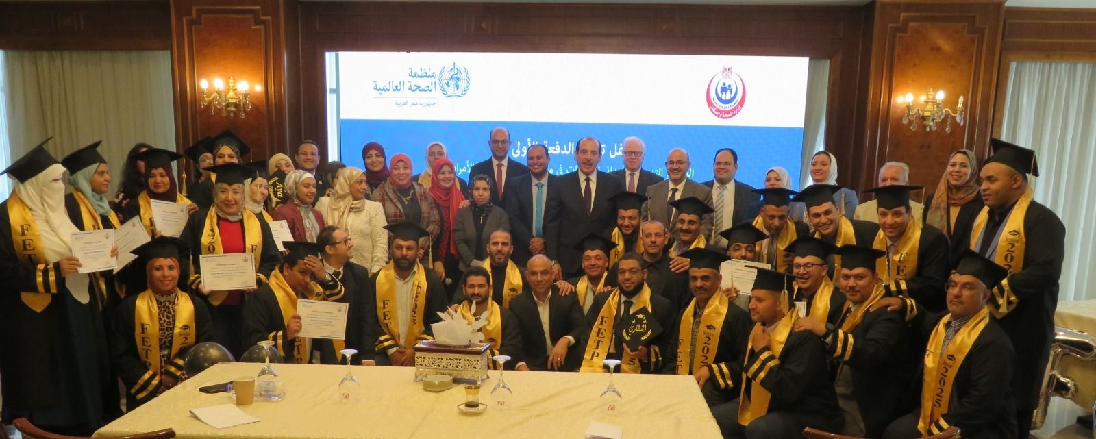 السبت، 06 ديسمبر 2025 10:40 صأعلنت وزارة الصحة والسكان، تخريج أول دفعة من برنامج التدريب الميداني للوبائيات (FETP) – مسار مكافحة ناقلات الأمراض، والذي نفذه قطاع الطب الوقائي بالتعاون مع منظمة الصحة العالمية والشبكة الشرق أوسطية للصحة المجتمعية، بمشاركة 32 أخصائيًا من 17 محافظة والفريق المركزي.