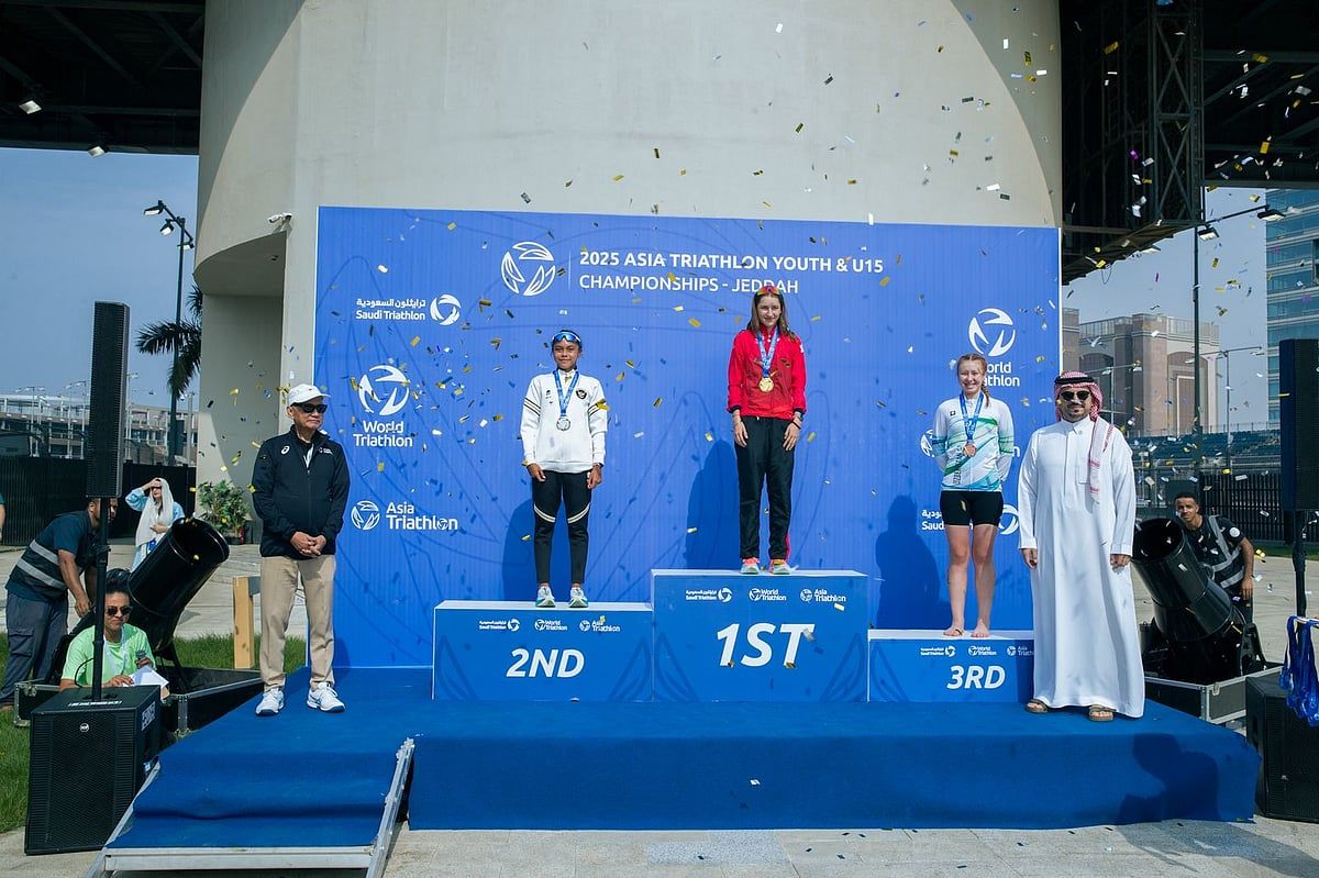 توّج الأمير فهد بن جلوي بن عبدالعزيز بن مساعد، رئيس الاتحاد الآسيوي للترايثلون، الفائزين في بطولة آسيا للترايثلون للشباب وتحت 15 عامًا 2025، التي اختتمت أمس في نادي اليخوت بكورنيش جدة على مسار الفورمولا 1، بمشاركة 89 متسابقًا من 19 دولة، وبإشراف وتنظيم من الاتحاد السعودي للترايثلون برئاسة الأستاذ مشعل السليمان.