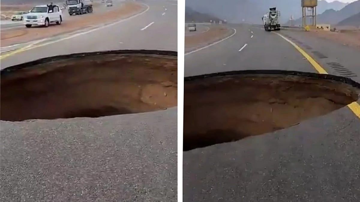 تداولت وسائل التواصل الاجتماعي خلال الساعات الماضية مقطعًا يُظهر انهيارًا أرضيًا في أحد الطرق بإحدى محافظات منطقة تبوك، وذلك عقب الأمطار الغزيرة التي شهدتها المنطقة.
