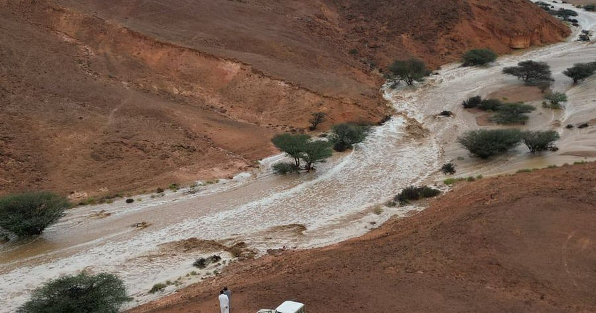 وقدّم المصوّر العنزي عبر عدسة كامرته الطائرة مشاهد خلابة تُظهر مسارات السيول منذ بدايتها وحتى امتدادها نحو البحر الأحمر، حيث بدت المياه تجري وسط تضاريس المنطقة المتنوعة، مجسدة صورة بصرية لحدث مناخي واسع التأثير.