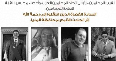 وتقدم نقيب المحامين بخالص التعازي والمواساة إلى أسر الراحلين وزملائهم في الهيئات القضائية، سائلًا المولى عز وجل أن يتغمدهم بواسع رحمته، وأن يلهم ذويهم الصبر والسلوان.