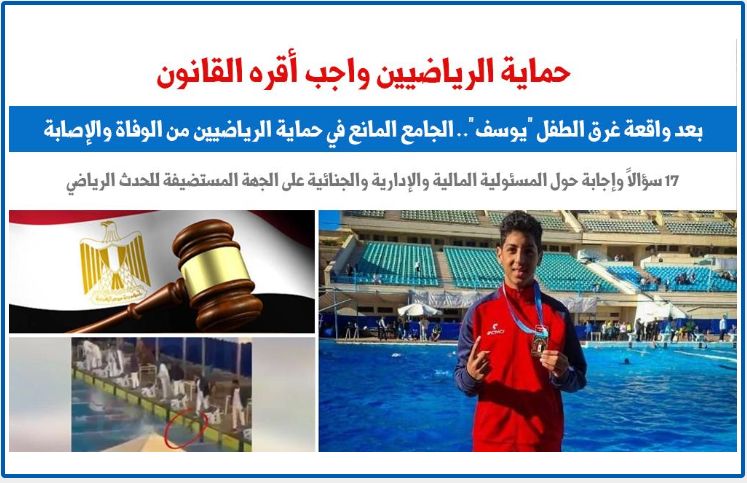 بعد واقعة غرق الطفل "يوسف".. الجامع المانع في حماية الرياضيين من الوفاة والإصابة.. 17 سؤالاً وإجابة حول المسئولية المالية والإدارية والجنائية على الجهة المستضيفة للحدث الرياضي.. وعقوبات تصل للحبس والغرامة